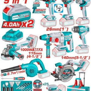 TOTAL ΕΠΑΓΓ. ΣΕΤ 9τεμ ΕΡΓΑΛΕΙΩΝ ΜΠΑΤ. Li-ion 20V / 4Ah / 2 ΜΠΑΤΑΡΙΕΣ BL Motor (TOSLI250381E)