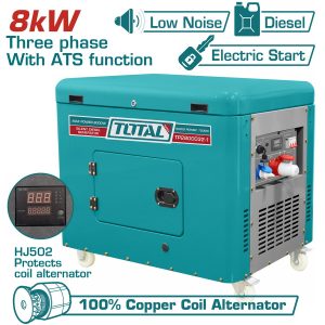 Τριφασική γεννήτρια ανοιχτού τύπου κατασκευασμένη από την εταιρεία Miyake με κινητήρα πετρελαίου. Έχει ισχύ 8kVA και προορίζεται για επαγγελματική χρήση που μπορεί να τροφοδοτήσει τις συσκευές και να καλύψει ανάγκες που είναι μεγαλύτερες από αυτών των οικιακών. Είναι εξοπλισμένη με μίζα για πιο εύκολη και γρήγορη εκκίνηση. Το δοχείο καυσίμου της έχει χωρητικότητα 13lt. Χάρη στις ενσωματωμένες ρόδες μεταφέρεται εύκολα και ζυγίζει 116kg.